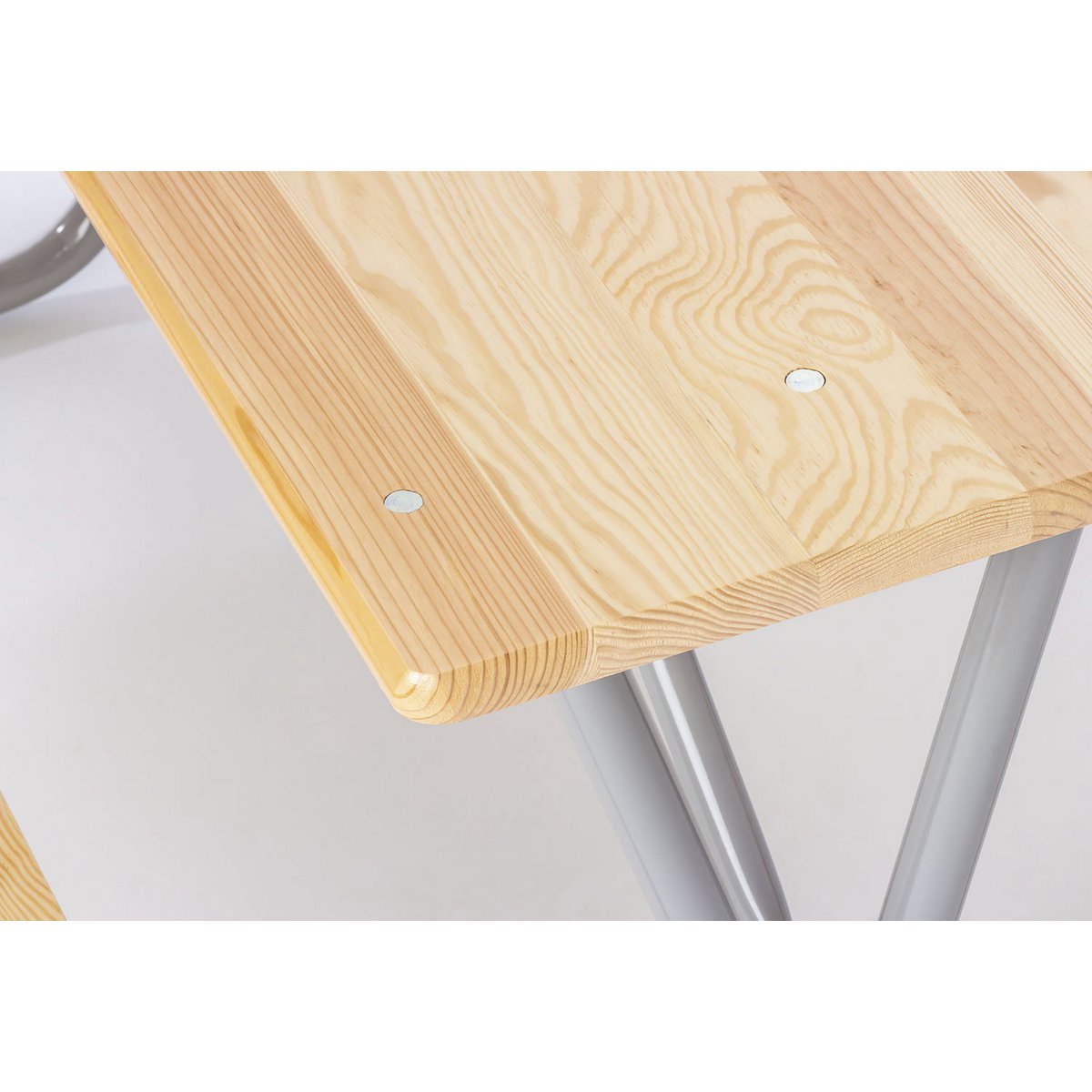 • Bois entièrement massif : pin laqué clair et métal laqué gris