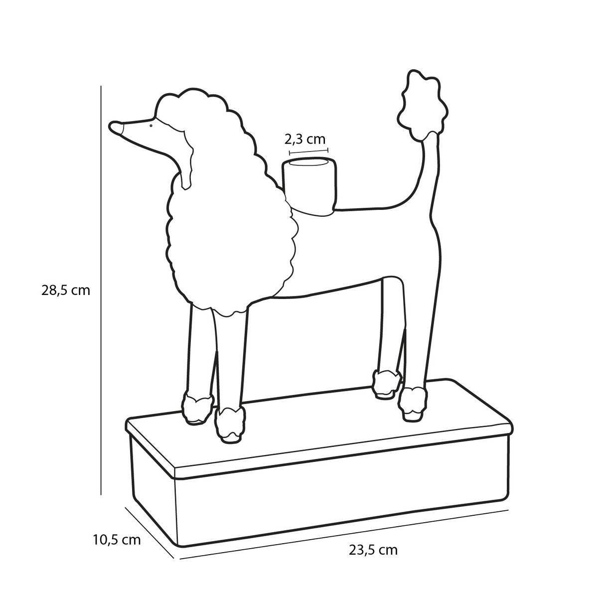 Vous recherchez une pièce marquante ? Alors ce bougeoir est fait là vous ! Avec le bougeoir, en forme de caniche et sur un plateau rayé, vous êtes assuré d'attirer l'attention. Le bougeoir est en céramique et a une finition brillante, magnifique ! Le bougeoir spécial a une longueur de 23,5 cm, une largeur de 10,5 cm et une hauteur de 28,5 cm et convient pour une bougie de dîner de 2,2 cm. Donnez une touche décalée à votre intérieur !