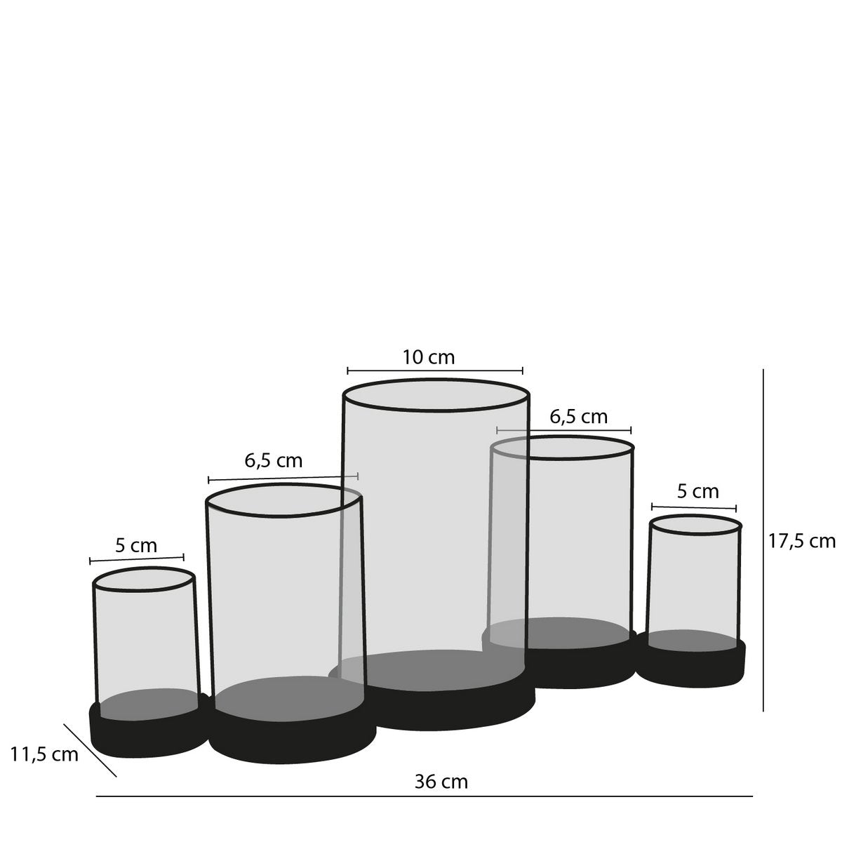 Améliorez votre intérieur avec l’ensemble Kratos. La forme des bougeoirs est cylindrique et ils ont un boîtier en verre doré et une base en métal noir. Cette base constitue la base d'une bougie chauffe-plat ou d'une bougie pilier. Vous pouvez facilement soulever le verre, ce qui facilite le placement d'une bougie. Le design donne un bel effet supplémentaire à la bougie. Les dimensions des bougeoirs sont H17,5 x Ø10 cm (1 pièce), H12 x Ø6,5 cm (2 pièces) et H8 x Ø5 cm (2 pièces).
