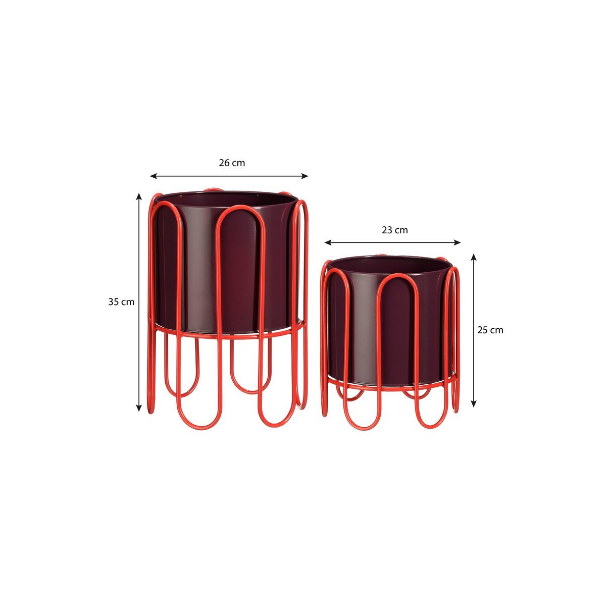 Dione Flowerpot sur standard - Ensemble de 2 - H35 x Ø26 cm - métal - rouge foncé, rouge clair