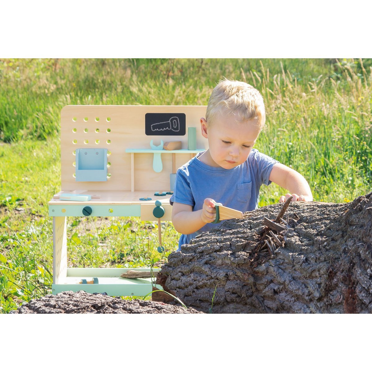 • 26 pièces : 1 établi, 1 boîte de rangement enfichable de manière variable, outil en 6 pièces, accessoires en 18 pièces