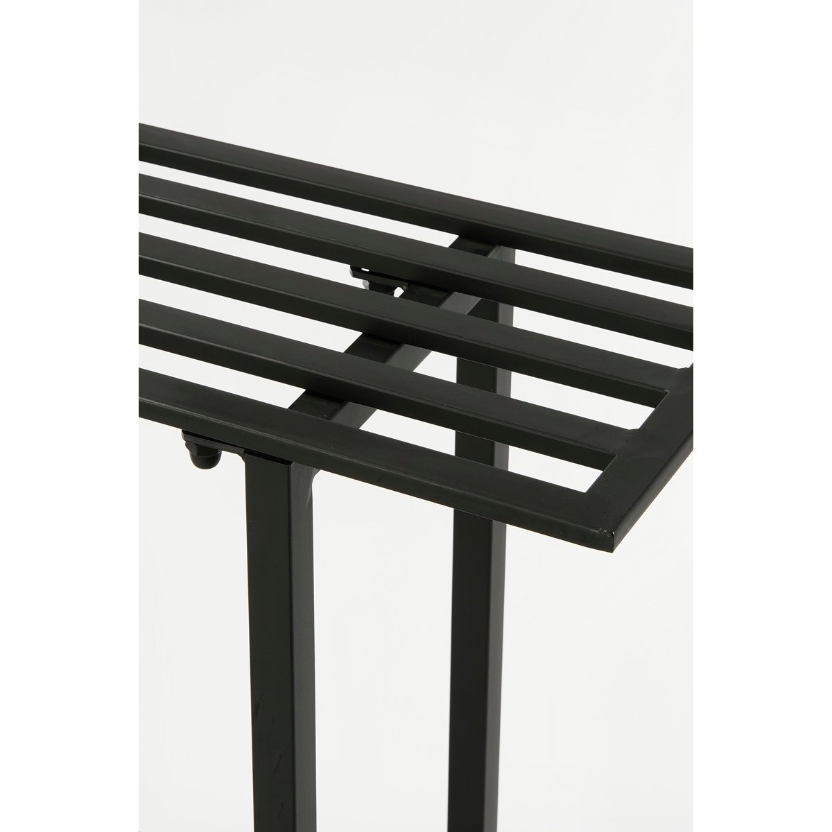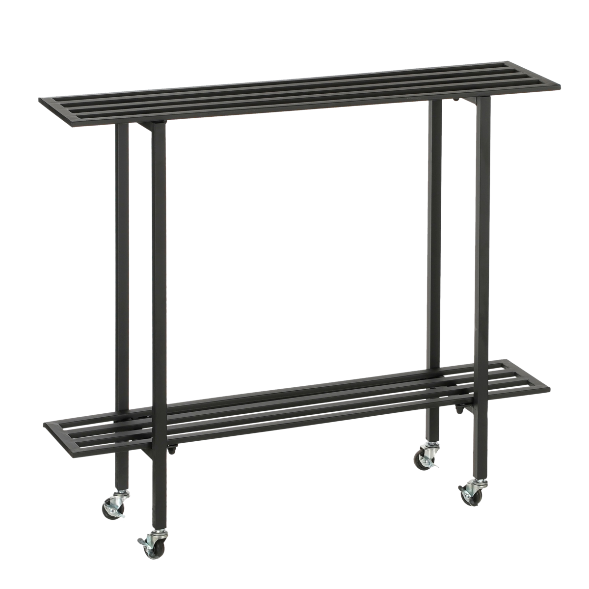 Dans votre jardin, sur votre balcon ou même sur votre jardin de toit, avec le stand de la plante Greenrax, vous la rendez confortable partout! Sur le stand de l'usine industrielle dure, vous pouvez mettre des plantes à deux hauteurs. En conséquence, il y a beaucoup d'espace pour mettre de belles plantes dans des pots de fleurs, mais vous pouvez également accrocher un scoop à main, un râteau à la main et une plante suspendue. Autant que possible! Parce que c'est un élément de black metal, vous faites vraiment une déclaration. Il a quatre roues pour que vous puissiez facilement le déplacer. Vous pouvez parfaitement combiner les jardinières et les objets GreenRax sur n'importe quelle surface, même si cela est plus étroit, idéal! Ce support de plante a une longueur de 90 cm, une largeur de 22 cm et une hauteur de 75 cm. Il y a une pièce de 57 cm entre les étages.