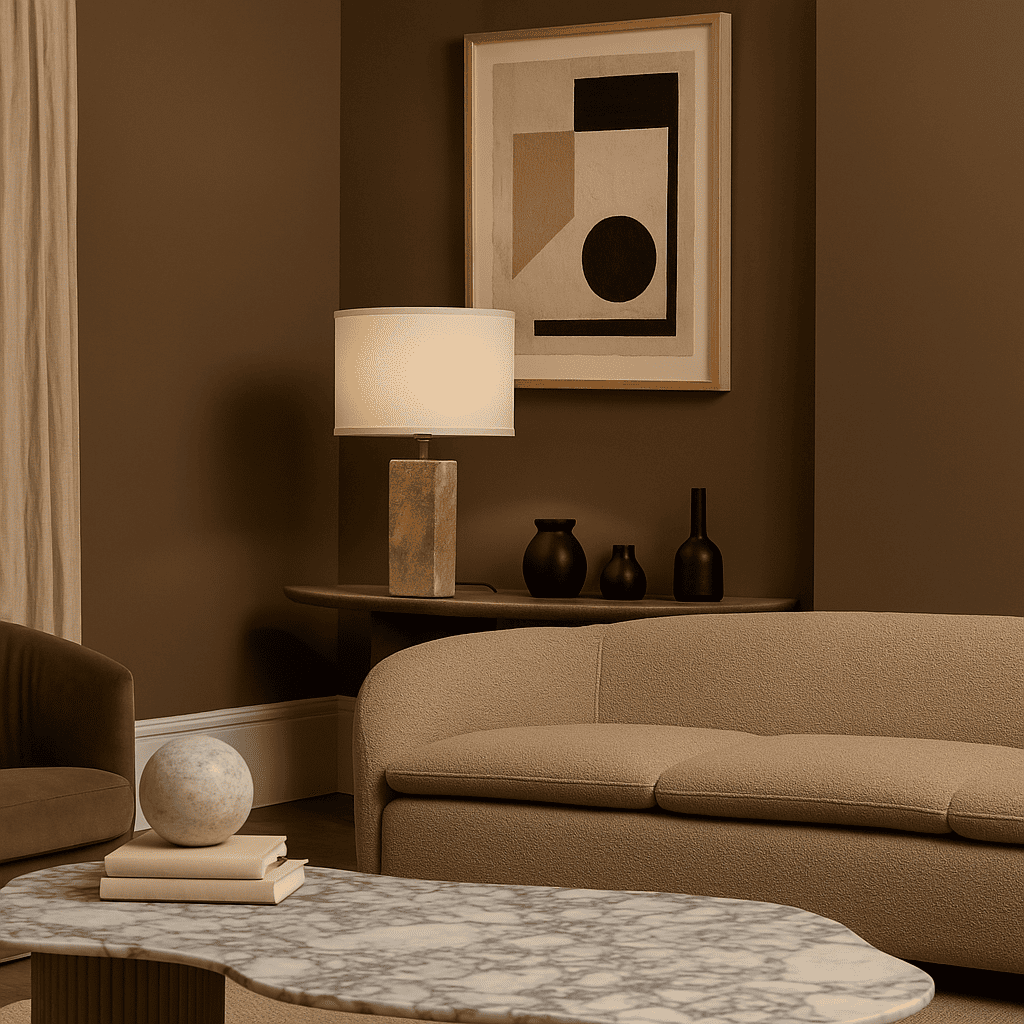 Lampe en travertin Rosie – Pierre naturelle élégante avec abat-jour en coton