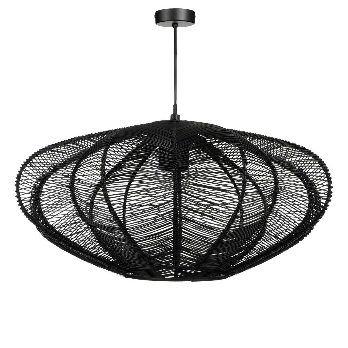 Faites briller votre intérieur avec la suspension Kanti. Sa structure en métal tressé noir diffuse un jeux de lumière raffiné, tandis que sa forme ovale en fait une véritable pièce maîtresse de votre décoration.