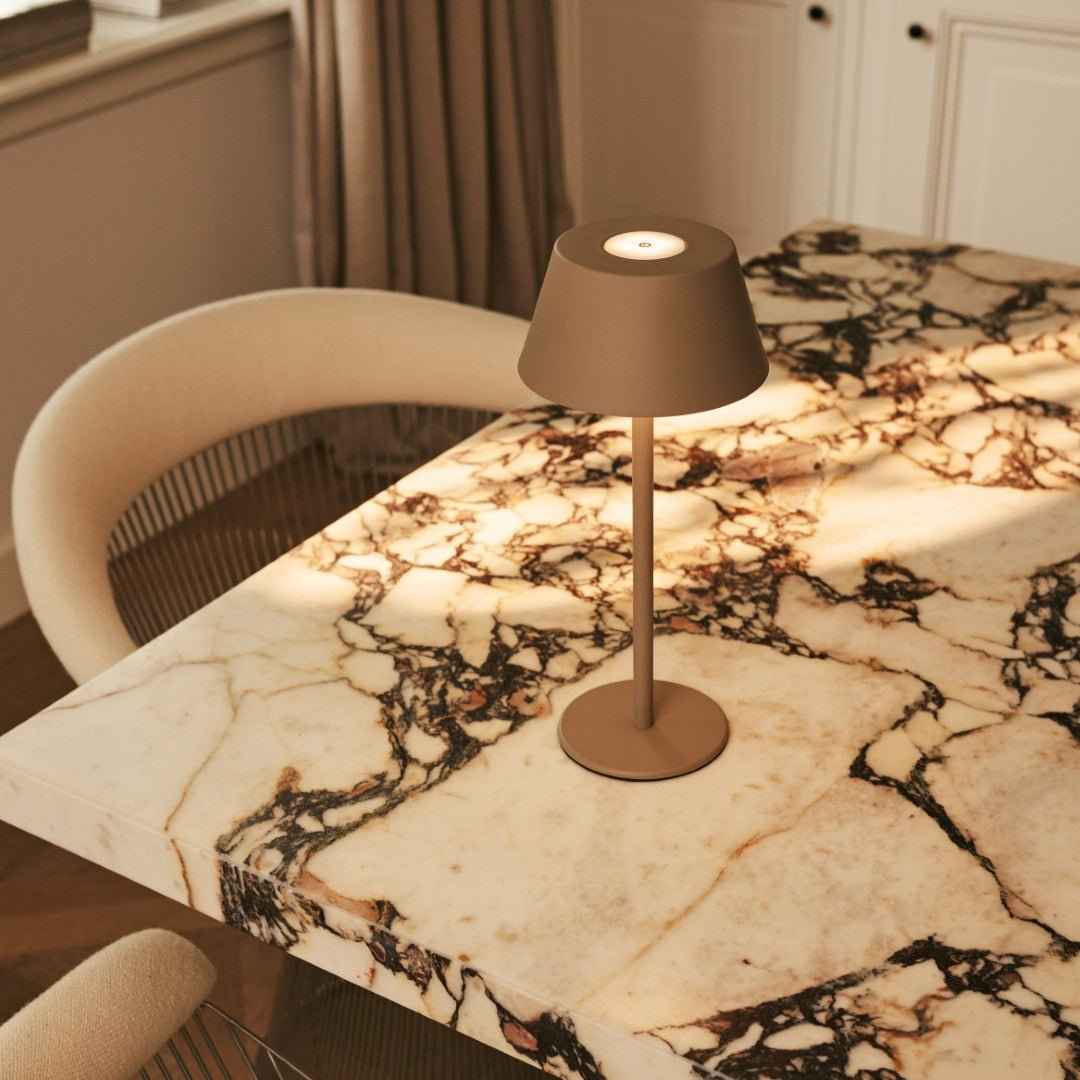 Milou Koala Brown - Lampe de table sans câble l moderne, design et 3 modes de lumière modèle élégant: Cette lampe de table sans câble a une conception stable et un look chaud et accueillant. La lumière rayonne atmosphérique vers le haut, et grâce à la fonction de gradin et à plusieurs modes de lumière, vous pouvez facilement ajuster l'éclairage à votre préférence. La batterie intégrée est rapide à recharger via le câble USB inclus et offre jusqu'à 120 heures d'éclairage, vous êtes donc toujours assuré d'un éclairage adéquat. Utilisation facile: La lampe est facile à utiliser avec une seule touche simple. Cela vous permet d'allumer ou d'éteindre facilement la lampe. Vous avez le choix de 3 couleurs lumineuses différentes (chandelle, lumière de l'ambiance et lumière de travail), vous permettant de toujours créer la bonne atmosphère, que vous vous détendiez, travaillez ou que vous vouliez simplement éclairer la salle. Sa conception durable garantit qu'elle convient à une utilisation à long terme. De plus, le fer peut résister aux conditions chaudes et froides et est entièrement recyclable.Applicabilité: Dimmable, rechargeable et élégant: cette lampe de table sans câble est idéale pour les restaurants et les salons. Il suffit de choisir votre couleur préférée. Spécifications · Dimensions: 10 cm Ø, 30 cm de haut · Matériau: fer métallique · Couleurs: Mokka Brown, Koala Brown, Bronze, Gol Anti-slip, sans fil et facile à dimmable · USB-C rechargeable, câble inclus