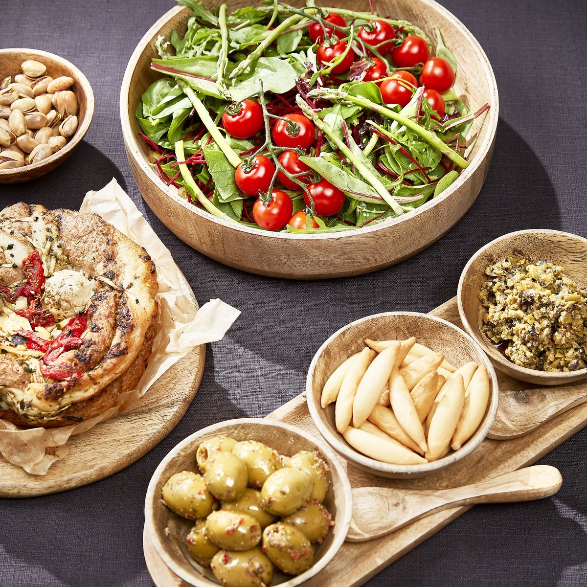 Les Plateaux Tomar sont parfaits pour servir l'apéro. Les bols sont fabriqués à partir de bois de manguier naturel certifié FSC à 100 % dans une couleur marron clair naturelle. Les plats sont vendus en set, trois coupelles et un plateau ovale.