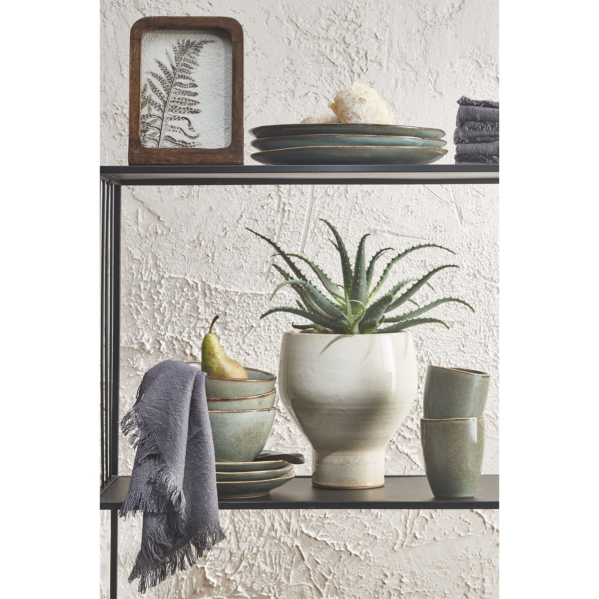 Rustique et robuste, c'est ainsi que l'on peut décrire au mieux la vaisselle Tabo de Mica Decorations. Pas de porcelaine blanche aux lignes parfaites ennuyeuses, mais des produits en céramique faits à la main dans des tons neutres. Chacun avec son propre look authentique qui correspond au pur plaisir. Pourquoi opter pour un seul article alors que vous pouvez également en obtenir un ensemble complet ? Cet ensemble de vaisselle Tabo se compose de 16 pièces et convient pour 4 personnes. Le set contient 4 mugs de H10,5 x Ø8 cm, 4 bols de H8 x Ø15 cm, 4 petites assiettes de Ø20,5 cm et 4 assiettes plates de Ø26 cm. La belle couleur verte avec des accents marron rend la vaisselle adaptée à n'importe quel intérieur ! De plus, chaque article peut être placé au lave-vaisselle ou au micro-ondes et la vaisselle résiste à la chaleur jusqu'à 180°C.