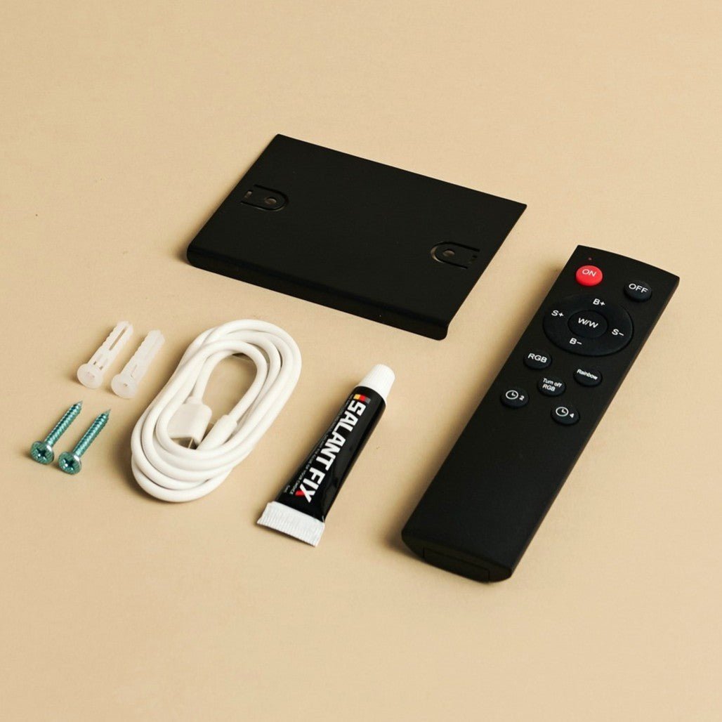 - Câble USB-C, support mural, matériel de montage et télécommande